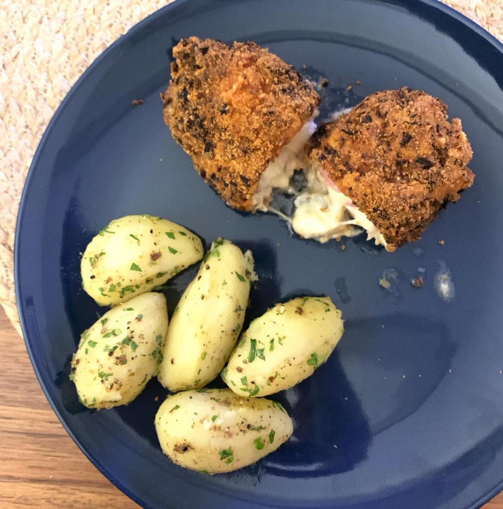 Ces petits cordons bleus au gorgonzola sont adaptés d’une autre recette : celle des bocconcinis, une spécialité italienne avec des escalopes de veau très fines que l’on fourre avec du fromage et du jambon, avant de les rouler et de les faire cuire. Cette fois-ci, je les ai aussi panées pour les décliner en cordon bleu ! Une tuerie pour les amateurs de choses panées dégoulinantes de fromage ! 🙂