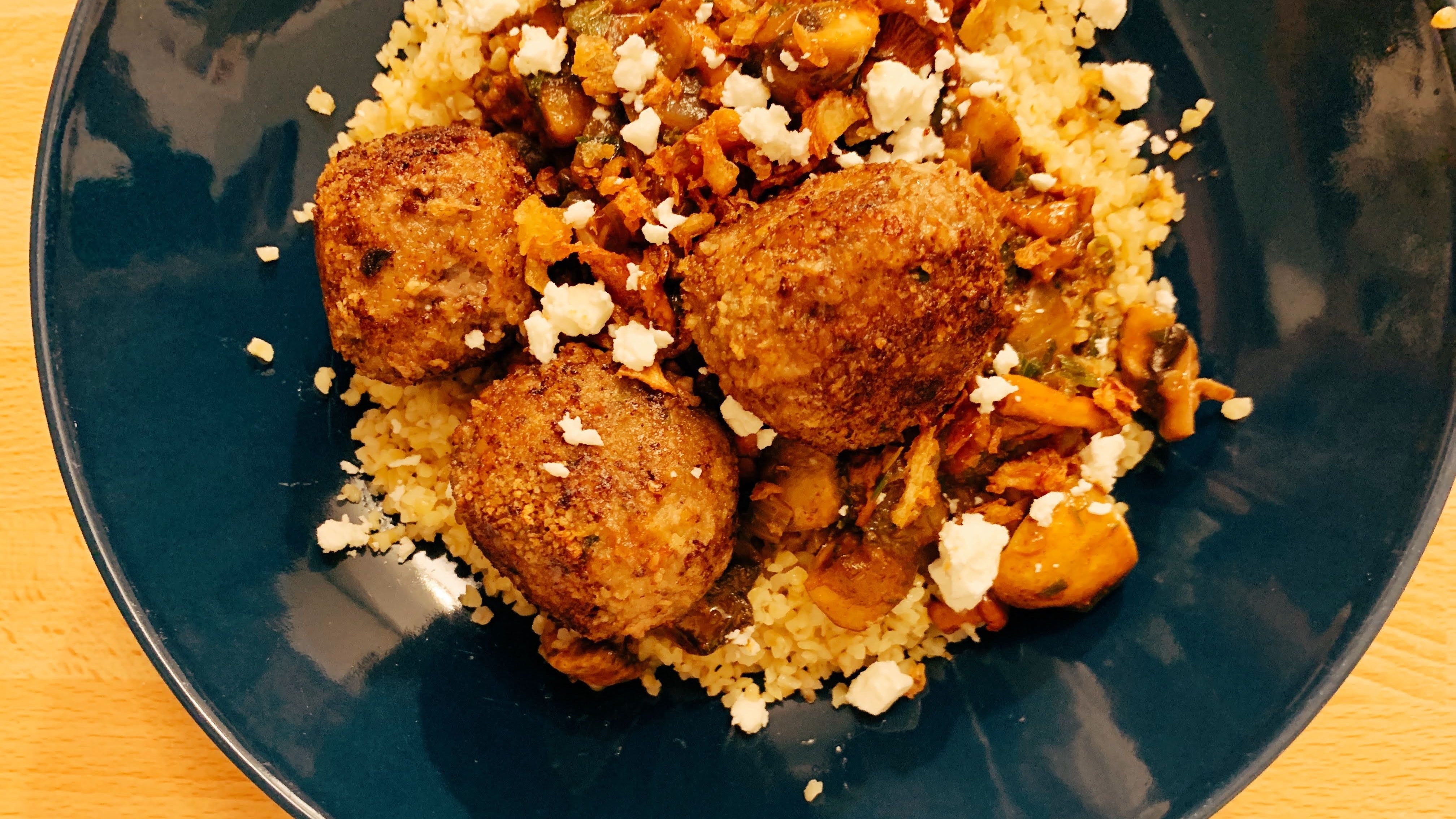 Les falafels sont une spécialité de la cuisine levantine. Très faciles à réaliser, ils sont aussi entièrement végétariens pour les adeptes. Au lieu d’utiliser des pois chiches, j’ai essayé une variante avec des haricots rouges. Vous pouvez les servir à l’apéro ou comme une entrée. Pour cette recette, Je les ai servis en plat principal avec des girolles, du boulgour et de la fêtA.