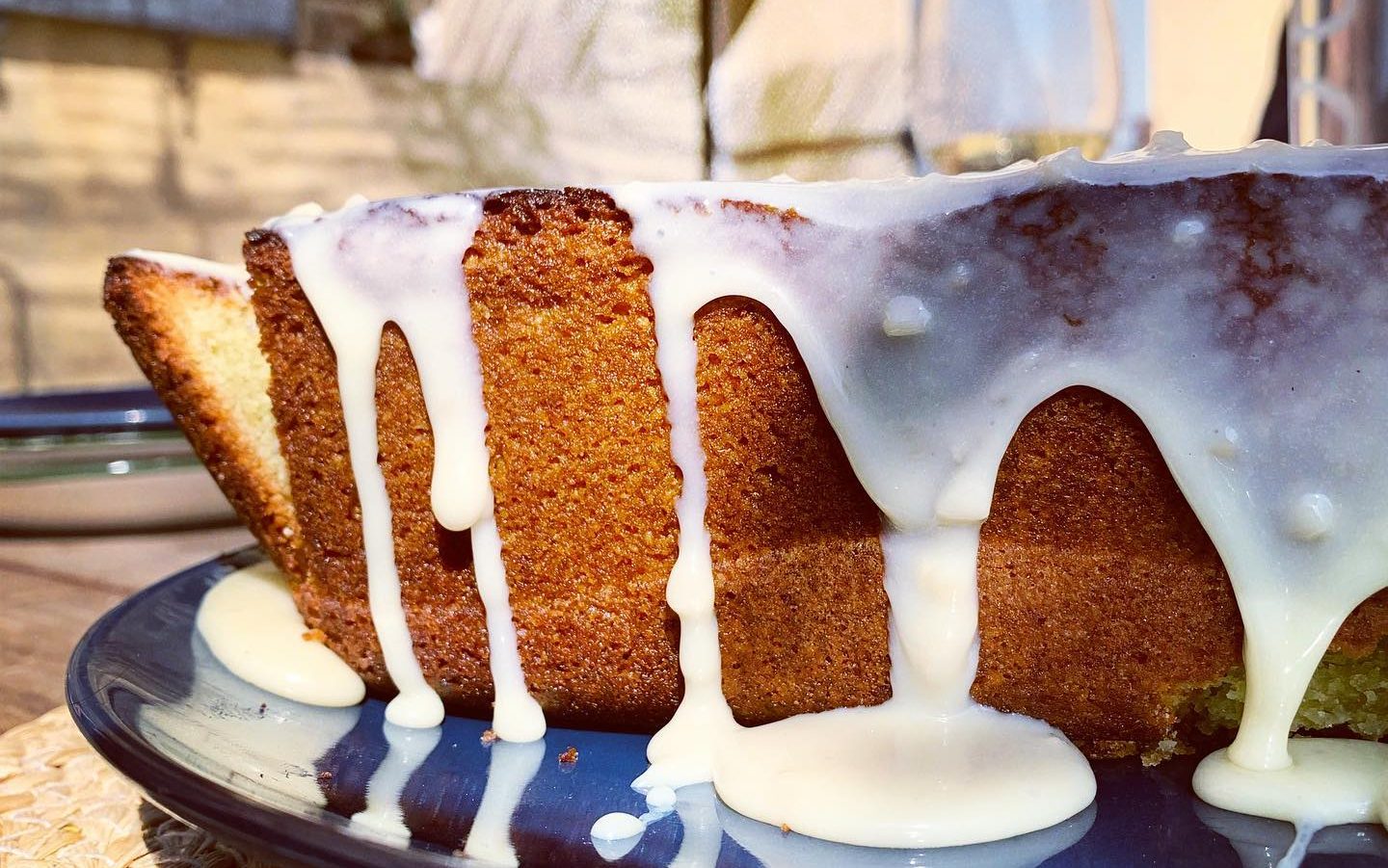 5. Pour le glaçage, quand le cake a refroidi, mélanger le sucre glace et le chocolat blanc fondu. Recouvrir le gâteau du mélange.