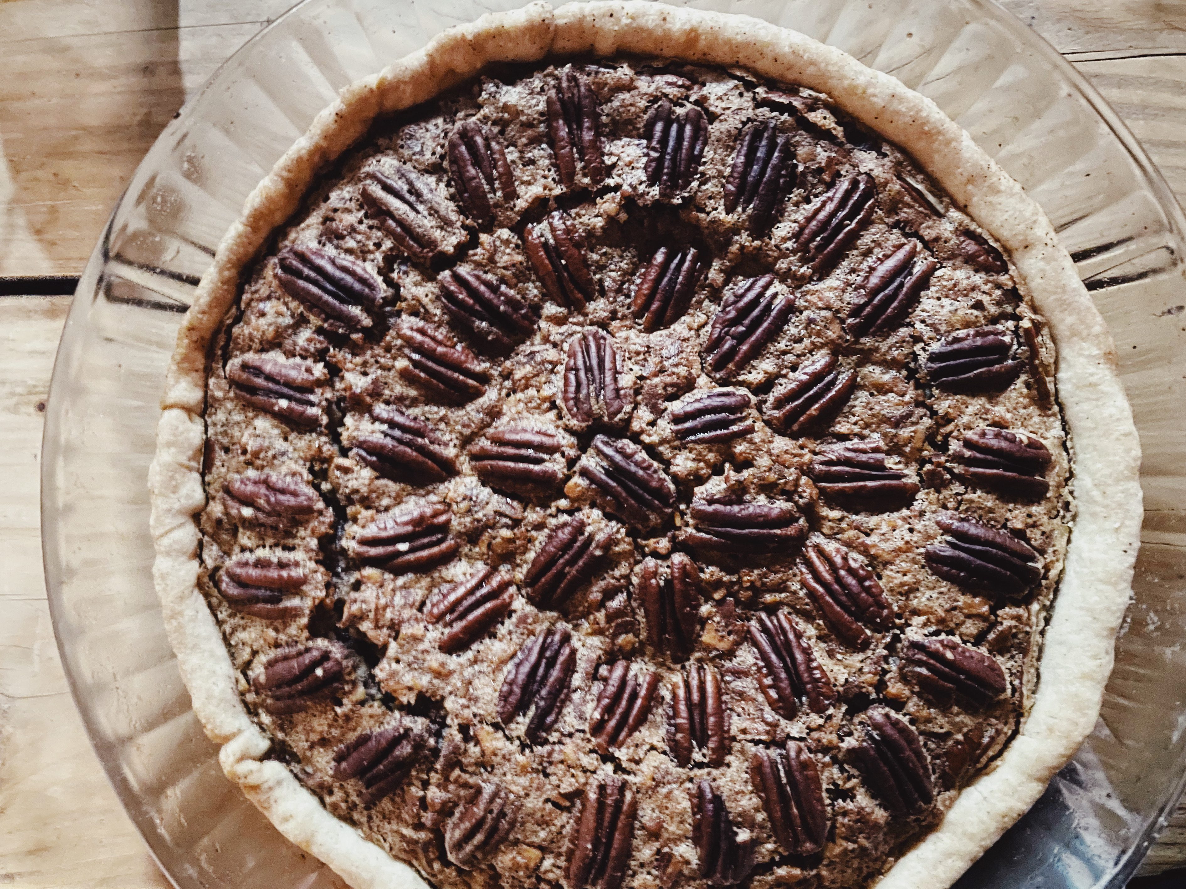 Aux États-Unis, la tradition veut que l’on prépare différents mets, dont des tartes : pumpkin pie, cranberry pie… Mais ma préférée reste la tarte aux noix de pécan ! Ne faites pas l’impasse sur la cassonade et le sirop d’érable qui donnent un goût incomparable à ce dessert.